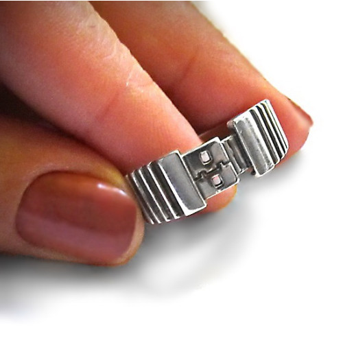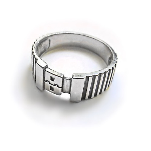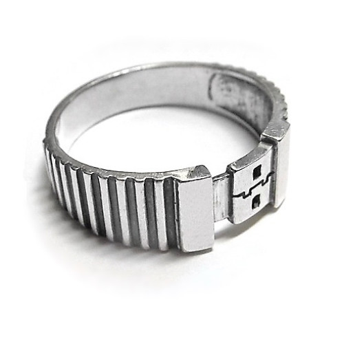Дуже незвичайний молодіжний перстень у вигляді USB роз'єму з чорненого срібла 925 проби від українського виробника. Оригінальний подарунок як всім, хто пов'язаний з комп'ютерними науками, так і будь-якому сучасному студенту. Адже в нашому божевільному 21 столітті, напевно, немає жодної молодої людини, яка б не була пов'язана з комп'ютером або електронними засобами інформації та зв'язку. І, якщо ти належиш до покоління молоді даного часу і вважаєш, що ти завжди в тренді сучасних реалій, тоді в твоєму рюкзаці обов'язково має бути місце для маленької флешки, а наш виріб не залишить тебе байдужим