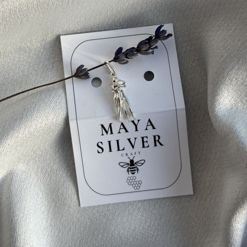 Мила підвіска Обійми з ювелірного комплекту, до якого входять також оригінальні підвісні сережки Обійми з англійським замком від української майстерні срібла. А за умови придбання всього комплекту діє знижка 5% вартості виробів, заявленої на сайті. Незвичайна ідея виконання перетворює ці вироби на неординарні і прикраси, мало хто з вашого оточення залишиться байдужим до такого аксесуара.